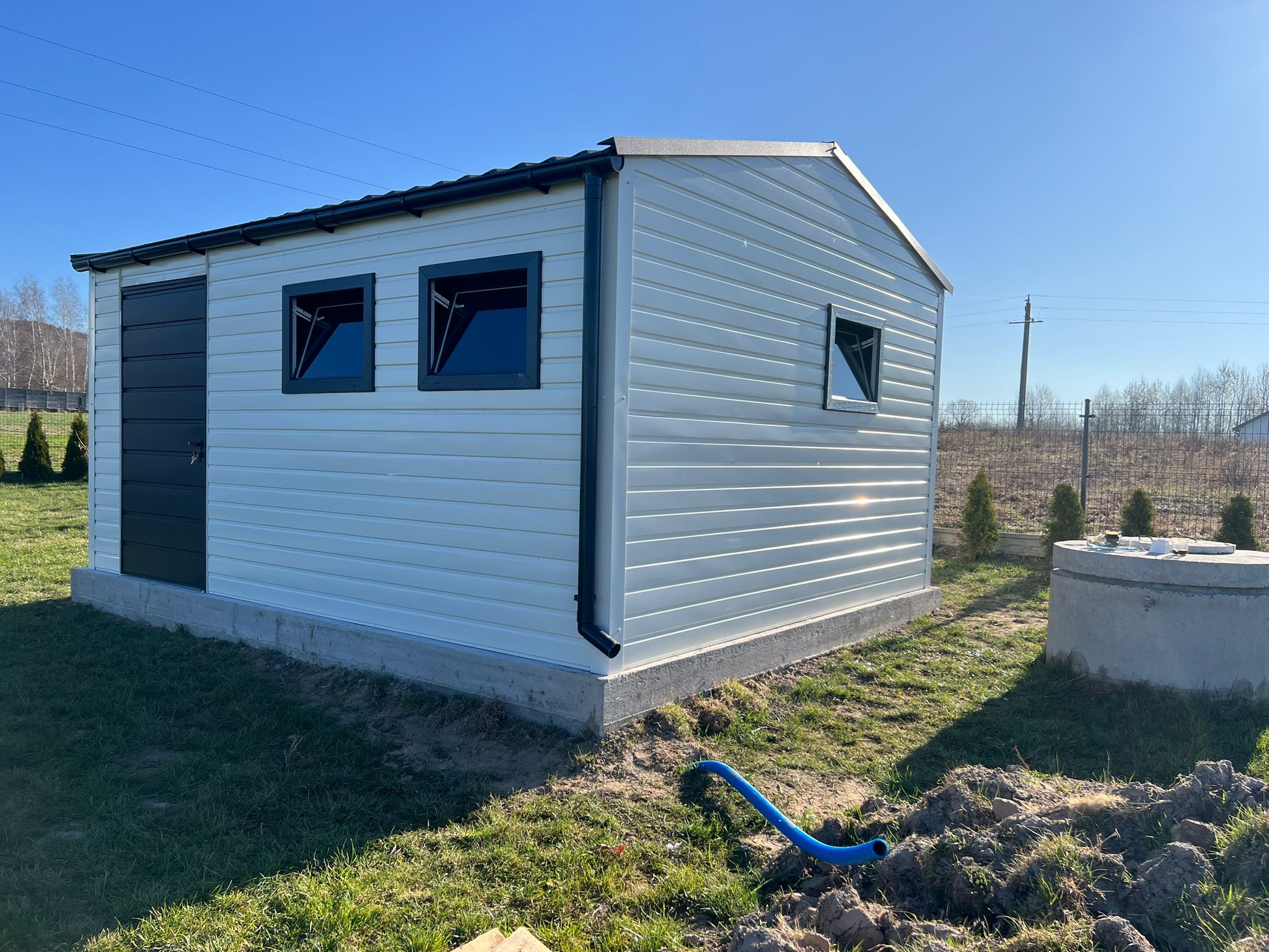 Wszystkie domki wykonane są z blachy ocynkowanej i drewnopodobnej, co zapewnia wysoką odporność na warunki atmosferyczne i jednocześnie zachowuje elegancki wygląd. Konstrukcja oparta jest na stalowych profilach, dzięki czemu domek jest stabilny i trwały.